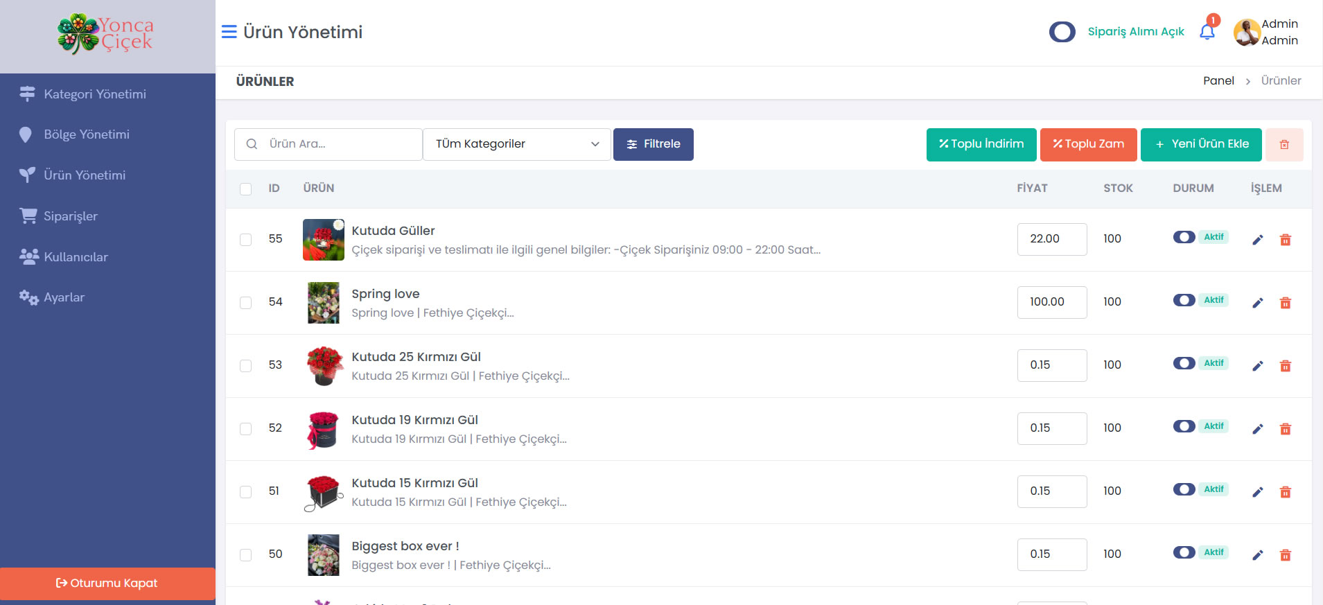 Modern ve kapsamlı çiçek sipariş yönetim sistemimiz, çiçekçi işletmenizi dijital dünyaya taşıyarak müşterilerinize kesintisiz hizmet sunmanızı sağlar.