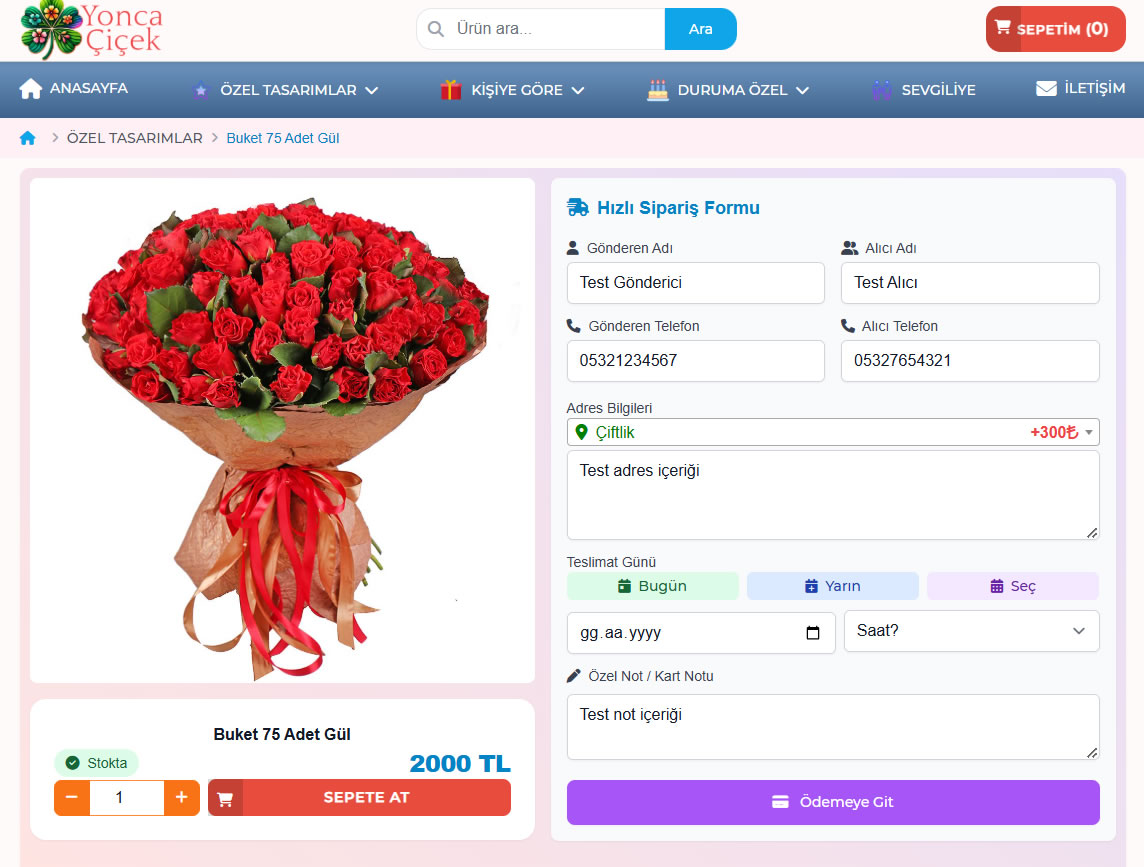 🌸 Online Çiçek Sipariş ve Teslimat Sistemi